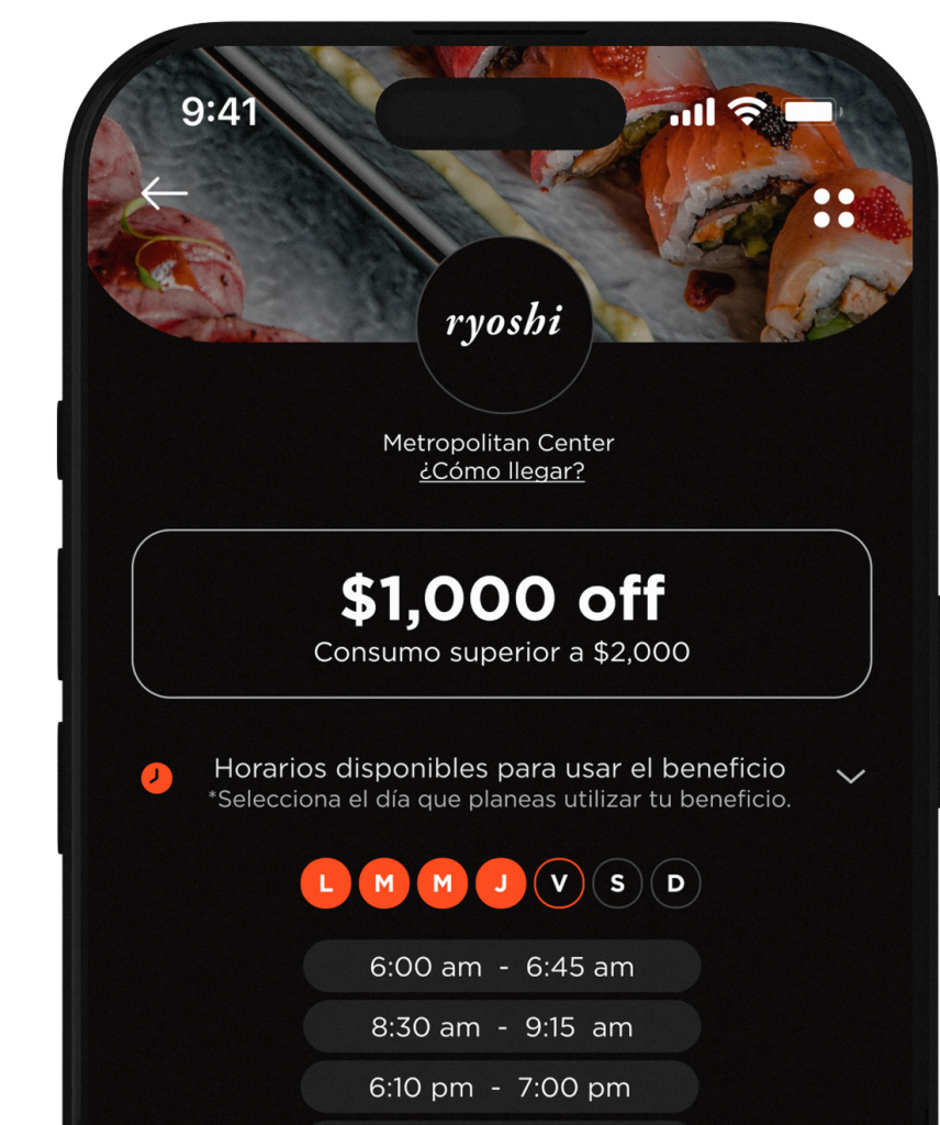 Selecciona fecha y hora. Asiste al establecimiento y disfruta de tu beneficio